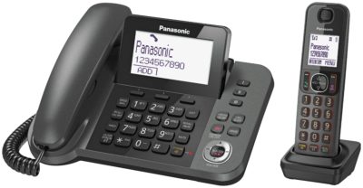 The Panasonic KX-TGF320 2- in-1 Design is simple and easy to use with dedicated buttons, one touch dial buttons and one touch Nuisance Call Block registration button. The 2 - in-1 Phone has a power back up operation alowing you to continue using the base in case of a power cut by using two AAA batteries. Telephone information: 100 name and number memories. 40 ringtones. Last number redial. Caller ID. Call log. Call divert. Handsfree facility. Speaker and ringer volume control. Up to 17/ hours talktime/330 hours standby. Up to 100m indoor range/300m outdoor range. Low battery indicator. 3 - Blocks a specific list of numbers and has either a virtual answering assistant or audible name announcement. Answer machine recording time 40mins. Personalised recording facility.