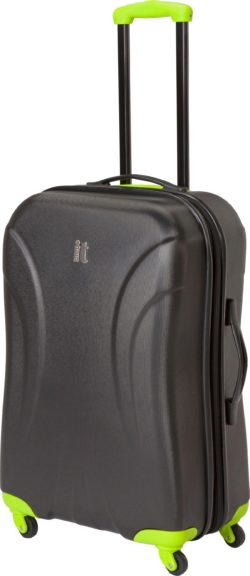 This stylish suitcase designed by IT Luggage has all the features to make travelling easy. The 4 spinning wheels make for a case that glides and can change direction with ease. The green details...