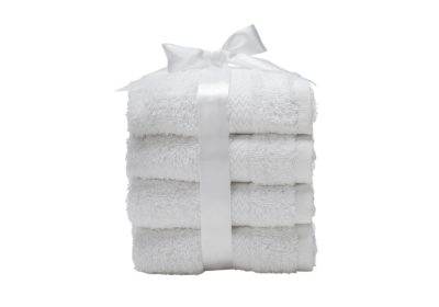 Part of the Forever collection. Extrememy durable, these towels stay white for a longer period of time, becoming whiter after every wash, maintaining purity and freshness of the product. Towel fabric 420gsm. Can be tumble dried. Face cloths: Size L30, W30cm.