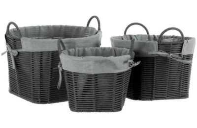 Stylish in design, practical in use, the Set of 3 round Lida storage baskets will provide ample space for keeping knick-knacks safely stored and your home organised. Size H25, W38, D35. Supplied assembled. Removable and washable liner. EAN: 5018705343044.