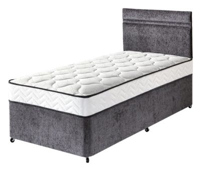 The Keswick Non Storage Divan features a 800 Pocket Sprung no turn, mattress that responds to your bodys movements, helping you sleep peacefully at night. Soft cushioning fills this mattress making it both a comfortable and responsive place to rest and sleep on. The divan comes in a dark grey chenille finish. Individual pocketed springs that respond separately to your bodys movements. The Hebdon headboard in dark grey chenille is the matching headboard for the Keswick 800 Collection. Headboard not included. Part of the keswick collection. Divan: Size W90, L190, H57cm. Mattress: Pocket sprung mattresswith 800 springs. Medium feel. Damask cover with micro quilt finish. Mattress depth 18cm. No-turn mattress. Rotate mattress regularly. General information: Weight 31.4kg. Minimal assembly: 2 people recommended. EAN:5051222412749.