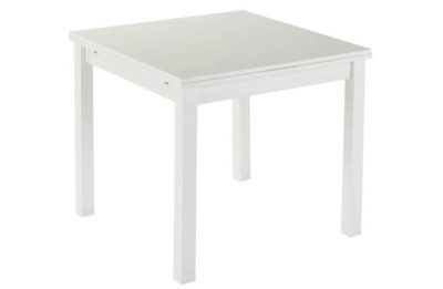 Meet our new Farnhill slide and hide extendable table. Finished in fresh white, this lovely piece is perfect for small dining spaces. It has a hardened lacquered top coat for a long lasting finish that's perfect in family homes. Under each end of the table is an additional piece, ready to be deployed. Simply slide it out and up to be level with the table top when you need it, and slide it back under when you're done. Part of the Farnhill collection. Table size: H75, L90, W90cm. Size of table extended L168cm. Integral table extension. Self assembly. EAN: 6065441.