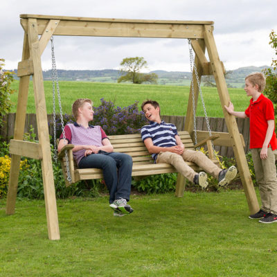 A simple and elegant design ideal for a country garden the Zest4Leisure Hollywood Swing Seat can sit up to three people comfortably and will be a stylish addition to your outdoor furniture. The seat is hung from hardened steel chains for a restful swinging motion, just perfect for watching the world go by. This wonderful piece of garden furniture is well worth the investment for its durability alone. It is very easily assembled and has been pressure-treated to protect against rot, which means it will keep its look and quality for years to come. Features and Benefits Stylish - Not only adds height and structure to the garden, but also style. Relaxing - The steel chains provide a restful swinging motion that is perfect for idyllic outdoor relaxation on warm summer days. Easy assembly - Comes with all fixings and full instructions so you can put it together quickly and simply. Specifications Material: FSC-certified timber Pressure-treated Steel chains Overall dimensions: H180 x W222 x D214cm Self-assembly: Yes Colour: Natural wood 10 year guarantee against rot