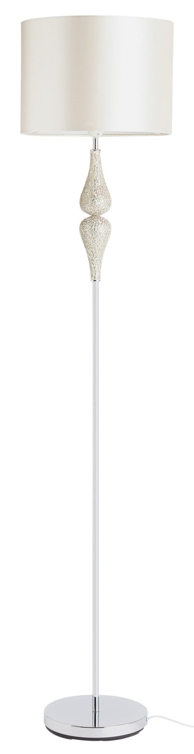 The Eloise floor lamp is a striking design from the premium Heart of House collection. The captivating crackled droplet design stands out beautifully against the traditional shade and sleek stem. Its sure to add style and character to your home. Height 162cm. Diameter 35cm. Diameter of base 25cm. Diameter of shade 35cm. Weight 5.7kg. Foot switch. Suitable for use with low energy bulbs, max 15 watts (es globe shaped e27 cap cfl bulb). Assembly required. No wiring required. In-line switch. Bulbs required 1 x 60W ES 60W (not included).