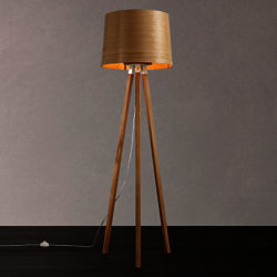 Hand-crafted from a single piece of oak, the wood is wrapped around itself to create a simple yet stunning shade. This pushes light to the top and bottom of the lamp as it sits on a modern tripod...