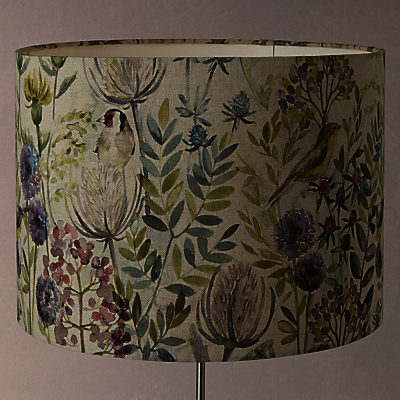 Adorned with beautiful foliage and wildlife, this drum shade allows you to usher in the refreshing atmosphere of the great outdoors into your living room. Finished using muted hues, the diverse colour palette means you can tie it into your choice of interior seamlessly. Made and designed in Scotland.
