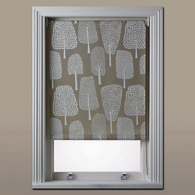 Daylight roller blind with a contemporary print of cedar trees. The fabric is moisture resistant, making it suitable for use in kitchens and bathrooms and the aluminium groove tube allows it to be standard or reverse rolled. Metal chain side control. Width can be cut to size. When fitting your blind, you must fit the safety device provided with the blind to the wall in order to tie up the pull cord safely out of the way of children and pets. For safety we recommend that you move beds, cots and furniture away from any window fitted with a blind that has a side control mechanism, even with a safety device in place. To prevent the formation of potentially hazardous loops, which could endanger children, this product incorporates a primary breakaway system. These components are designed to come apart when undue force is applied to the blind cords or chains. This breakaway system is easy to reassemble in the event of the cords or chains being pulled too hard, and breaking away accidentally in use.