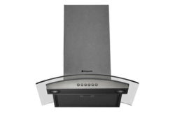 The Hotpoint HDA65SAB is a 60cm curved glass hood. 3 fan speeds. Maximum extraction rate of 486m³/hr. Noise level 61dB. 2 lamps. 2 halogen lamps. Charcoal filter. Washable filter. Adjustable...