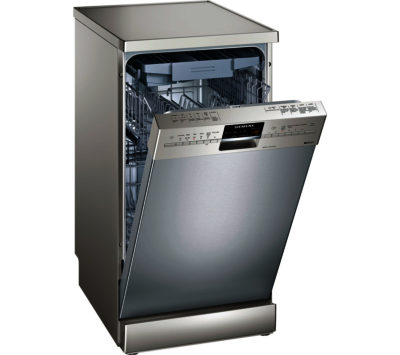 Perfect for smaller flats, starter homes and areas where space is tight. The Siemens iQ500 SR26T891GB Freestanding Dishwasher will unobtrusively slip into your home without any fuss. Quick as a flash! Not everybody wants to wait around for the dishes to be finished, and some think if you use a shorter wash cycle, you won't get the same incredible results. Select VarioSpeed Plus on this Siemens dishwasher, and have your crockery washed, dried and ready for next use in up to 50% less time than other standard dishwasher cycles. Your dishes will sparkle every time. The load weight is detected by the machine and alters the water required for your wash cycle. So if you need to get a larger amount of dishes cleaned, more water will be added into the cycle for soaking purposes; and if you only have a small load to task, less water is added; saving you energy and therefore money on your utility bills. Flexibility If you have been cooking for the five thousand, have a mountain of dishes to clean and think that it really just won't fit in one, then the VarioFlex baskets and VarioFlex Drawer is the ideal companion to your dirty crockery. With 2 foldable VarioFlex racks in the lower basket and the VarioFlex Drawer completely removing the need for a cutlery basket, you have even more space to load. Being able to accommodate 15 place settings, pots and pans of all sizes and other larger kitchen essentials that you wouldn't normally expect to be catered for in regular third loading levels, you can fit more in one go; meaning you won't need to run the appliance so many times, therefore not wasting water or any energy. Aqua Stop For added peace of mind, Aqua Stop found on this Siemens dishwasher protects against the risk of flooding in the unlikely event that an internal part should stop working and malfunction. Water flow is stopped directly at the source at the tap by a mechanical valve, halting any further flow and reducing the risk of flooding. Make your glassware sparkle Glassware can be fragile and delicate, often only being hand washed in fear of them breaking during the cleaning cycle in a dishwasher. Siemens has the answer to this problem with their glassCare system. This programme delivers a very gentle, thorough cleaning process to your glasses and flutes, giving you dazzlingly sparkly results time after time. Keep out! With children around the house, sometimes the door is accidentally opened and interrupted mid cycle. This isn't good for the appliance and will eventually result in problems arising. The SR26T891GB Freestanding Dishwasher has a nifty mechanical door lock system to prevent any access during the cleaning cycle. For outstanding results on your crockery and glassware, look no further than this Siemens iQ500 SR26T891GB Freestanding Dishwasher.