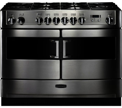 The Rangemaster Elite SE 110 Dual Fuel Range Cooker in stainless steel is a stylish and dynamic appliance with modern styling and exceptional practicality. Loads of hob space and power Benefitting from the flexible, rapid and dynamic power of gas, the Elite SE 110 offers a 110 cm hob with six burners of various sizes that will accommodate cookware of all dimensions. Matte-finished cast iron pan supports keep things perfectly stable and level, their extreme durability withstanding the heat and bustle of any kitchen. Boil, fry and simmer with unparalleled ease and versatility, taking advantage of the two triple-ring wok burners that are ideal for preparing larger quantities of ingredients for a genuine Asian-style meal, or simply handling your biggest pots and pans to meet your needs. A half-smooth, half-ribbed griddle plate is included, giving you an easy way to grill steaks or the perfect breakfast. Spark up the hob quickly with the easy one-handed ignition system. An oven that has it all Featuring two large electric ovens, the Rangemaster Elite SE 110 Dual Fuel Cooker gives you all the cooking options you'll need to create delicious masterpiece after masterpiece. The multifunctional 69-litre main cavity offers a defrost function, fanned oven heat, fanned grilling, fan-assisted oven heat, conventional oven operation, a browning element and base heat for stunning versatility. Fully programmable, it allows you to time every dish to cook just how you want it. Enormous cooking capacity The dual-fuel Rangemaster Elite SE 110 's space and power don't end there. A large second oven cavity offers an impressive 69 litres of space that allows you to prepare all kinds of items to complement your main meal. Using fanned heat, it gives extremely even temperature distribution that's ideal for cooking similar items simultaneously on each level. Bake batches of biscuits, brownies and pizzas to crispy perfection. A full-width variable Handygrill is included in the main oven for premier meat, vegetable and fish preparation. Cook in a healthier way with little or no oil, browning and crisping any dish to achieve delicious textures. The grill glides out smoothly for easy loading, unloading and checking of food. Easy maintenance features Catalytic liners in both oven cavities reduce spillages and debris to an oxidised compound at high temperatures - all you need to do is wipe away the residue for straightforward oven maintenance that makes the whole cooking process a seamless pleasure. What's more, all pan supports, the griddle and the wok cradles are dishwasher-safe, so it's incredibly easy to keep the whole cooker in top shape. Recommended by the Energy Saving Trust, this dual-fuel cooker is rated 'A' for energy efficiency, so you know it's friendlier to the environment and has less of an impact on your household bills than other models. A full-width storage drawer completes the package, ideal for keeping essential cookware close to hand. Characterised by its uniquely contemporary, design-led looks, the stainless steel Rangemaster Elite SE 110 Dual Fuel Range Cooker combines stunning power with subtle details for a satisfying, high-quality cooking experience.