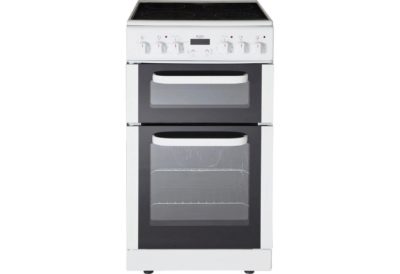This Bush 50cm wide double electric fan cooker with ceramic hob features a clock with minute minder. The double oven allows you to either cook in one oven whilst grilling in the other, or you can set both ovens to cook at separate temperatures. Both ovens are super efficient A rated with the main oven being a fan oven with interior light. The ceramic hob gives quicker heat up times, greater responsiveness and is more energy efficient than a sealed plate hob. Includes 2 oven shelves with the grill pan being able to be used as a third oven shelf. The removable glass door for ease of cleaning can simply be lifted out without the need for any screwdrivers. Side opening door. Defrost function . LED clock. Minute minder. Removable inner glass door for easy cleaning. Easy-clean enamel. Double glazed. Interior light. Main oven: Side opening door. 2 shelves. 49 litre usable capacity. Energy efficiency rating A. Energy consumption 0.78kWh. Second oven: 2 shelves. 25 litre usable capacity. Energy efficiency rating A. Energy consumption 0.58kWh. Hob: Ceramic hob. 4 cooking zones - . Grill: Electric grill. Combined with top oven. Includes grill pan and handle set. General information: All Electric cookers must be hard wired and fitted by a qualified registered electrician. Size H90, W50, D60cm.
