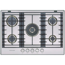 Within its 75cm width, the KitchenAid KHMD577510 gas hob offers a classic five-burner format with a centrally-positioned high-power burner and front controls. It's practical, giving you plenty of...