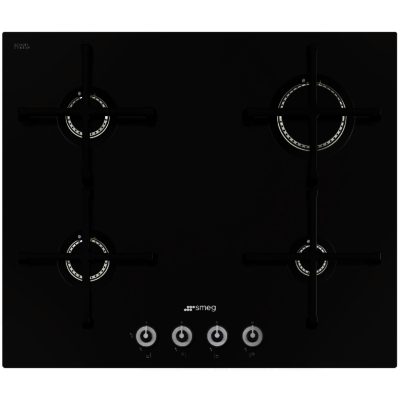 Smeg PV164CN 60cm Linea Gas on Glass Hob with Ceramic Straight Edge Glass in Black Glass