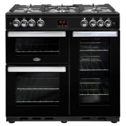 Belling Classic 90GT 90cm gas range cooker features gas hob grill and main oven and a huge second 91 ltr tall electric fan oven which runs on a 13amp connection. The one piece hob has 5 burners...