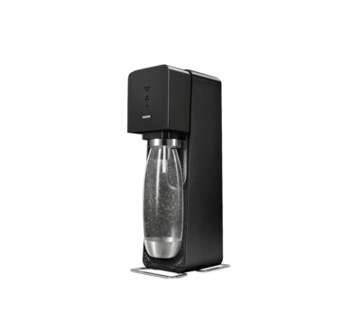 Don't fight the fizz - it's nothing but fun and great tasting drinks with the stylish new-generation SodaStream Source Drinks Maker in a classic black finish. Exciting and fresh design Designed by Yves Behar, the beauty of SodaStream is that it's so simple and easy, but gives you and your family both delightful fizzy drinks and memories of making them. This home carbonation drinks system will transform ordinary tap or filtered water into fizzy, tasty and better-for-you soda, doing away with the need for carrying, storing and disposing of cans and bottles. The Sodastream Home Drinks Maker lets you enjoy maximum bubbles with minimum bottles! Effortless and so much fun It's effortless to create a delicious drink with your SodaStream Fizzy Drinks Maker as you get the hang of the intuitive Snap-Lock bottle mechanism in no time. There's also an LED indicator that enables you to decide how fizzy your drinks are going to be. You'll be downing delicious soda drinks in literally 30 seconds. Loads of Soda Make your kids' world a more fun and sparkly place by choosing from an exciting range of over 60 lip-smacking drinks flavours. This awesome package includes a 60 litre gas cylinder and 1litre carbonating bottle to set you off on your journey of fizzy fun. The SodaStream Source Drinks Maker not just a home fizzy drinks machine, it's a fantastically fun way to transform your kitchen and make memories doing it.