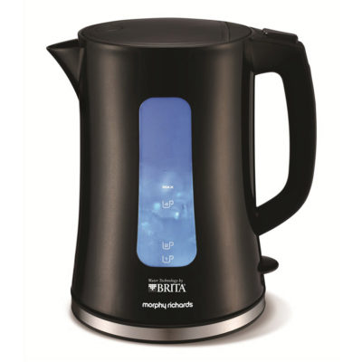 Morphy Richards Accent Jug Kettle Black Enjoy cleaner, clearer, great tasting brita filtered water, enjoy your hot drinks with a natural aroma and fuller flavour. 3000w 1.5L Rapid boil: Top lid button release 360° base: Top lid button release Concealed element: Top lid button release Top lid button release Brita filtration technology Memo technology Colour: Black Batteries 1 x Lith 1.3 included Material: plastic Weight: 1174g Dimensions: D:17.5cm x W:22.5cm x H:25.4cm Guarantee: up to 2 years
