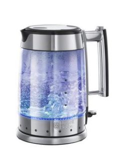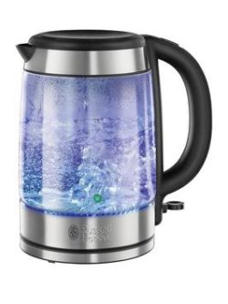Russell Hobbs 21600 Glass Kettle Sleek and stylish with a clear housing and brushed stainless steel accents, the Illuminating Glass Kettle will look quietly elegant on any work surface. Made...