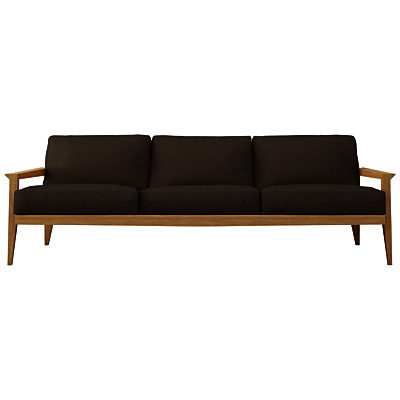 The Stanley range is the perfect combination of sharp lines and soft upholstery. The range has a mid-Century modern design, which recalls the clean-lined aesthetic of the 1950s and '60s. Combining the light oak finish with the dark fabrics creates a bold, graphic statement, where the light fabric is contemporary and bright. Designed by Matthew Hilton, both the sofa and armchair have a solid oak frame, which gently tapers towards the back, while the low arms and soft leather upholstered cushions make the pieces both aesthetically pleasing and also comfortable.