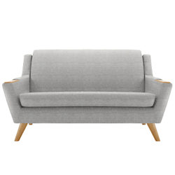 This mid century inspired sofa blends the outstanding comfort of a thick foam seat with stylish details, such as the elegant wooden arm detail and sleek turned legs. This timeless piece reworks the...