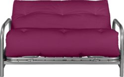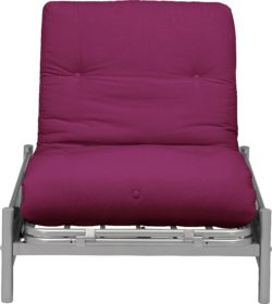 This HOME single futon sofa bed will create a cosy corner in any room - especially for those who are limited on space. It comes complete with a plump purple mattress and a sleek metal frame. Durable...